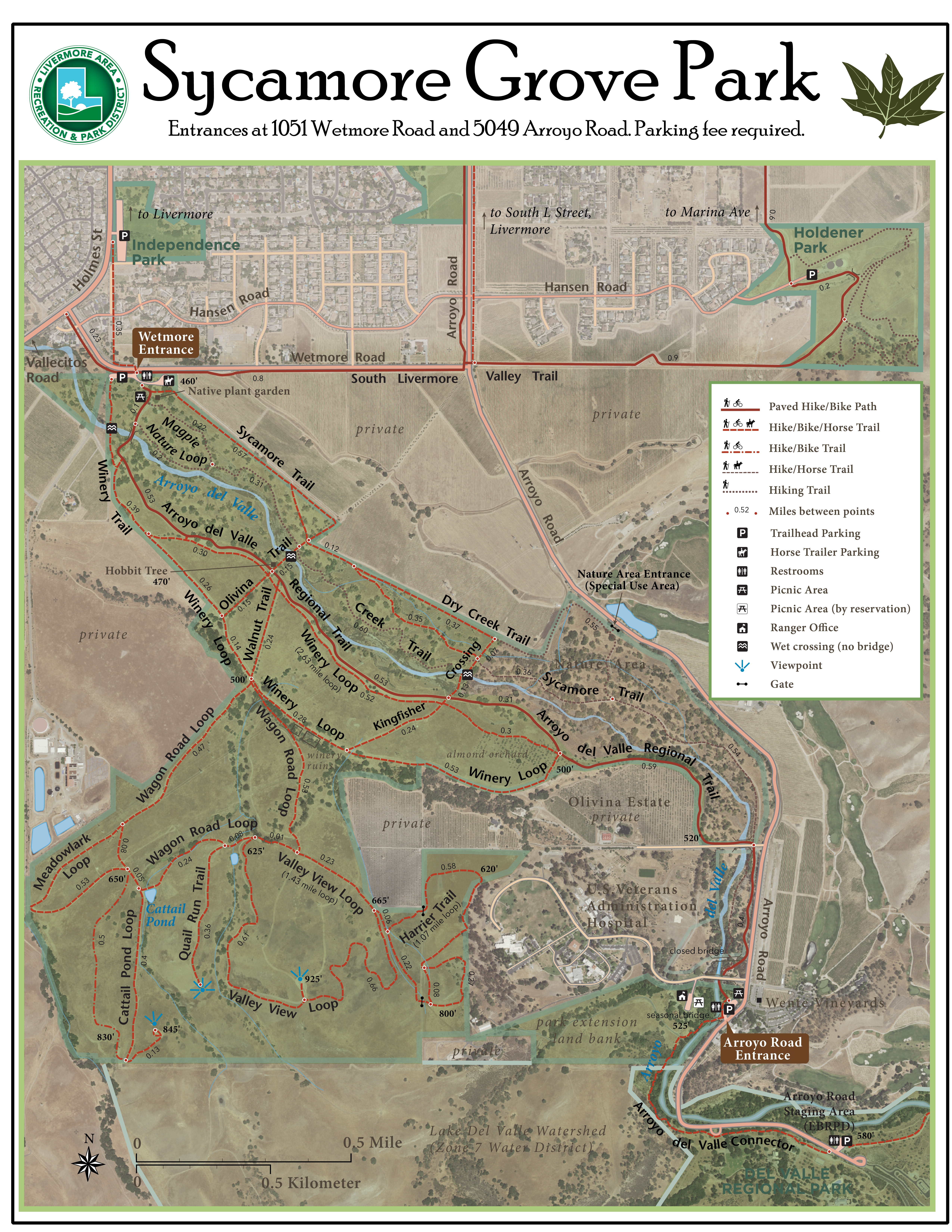 A large map of the park is posted at entrances to Sycamore Grove Park. A print version of the map can be viewed, downloaded here: